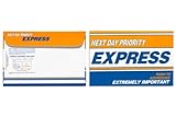 | ✚✚✚ 9 x 12 Booklet Express Envelopes - Next Day Express (1400 Qty.) These express envelopes make your mail look important. Not that it isnt, but no matter what these envelopes will stand out. Get priority mail, ups or a fedex type look without the expense. These envelopes mail at regular first class rates. They are made from a 8pt stock so they are thicker than normal envelopes, but not paperboard. They are printed on the front and the back and you can address the back and put postage on the back, as long as the address and the postage are on the same side.