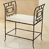 Faux Bamboo Bench. Create a natural retreat with the Faux Bamboo Bench. Put this bench anywhere you need extra seating and a unique focal point; its airy, graceful design is sure to draw the eye. This bench features an iron frame, finished in matte black, and carved to resemble the joints and roughness of bamboo wood. The frame forms openwork arms on both sides with geometric square designs worked into the pattern. Between the arms is the rectangular seat, which is cushioned for comfort and upholstered in neutral ivory fabric. This unique bench measures 25.25L x 16W x 28.75H inches and has a weight capacity of 200 pounds.About Global ViewsGlobal Views is a provider of quality, fashion-driven home furnishings and accents from around the world. Their products range from decorative accents like candelabras and lighting fixtures to benches, chairs, and tables. High-end home decor magazines, such as Elle Decor, Metropolitan, and Traditional Home, have taken notice of the quality and style their products exhibit. Global Views products have also been featured on main-stream TV show sets, including Extreme Makeover Home Edition, HBO Golden Globe, SAG party, and the Apprentice.Always environmentally aware, all Global Views products are made of natural materials, and their packaging is recyclable. Global Views staff members make extra efforts to minimize their carbon imprint by making wise energy choices and promoting recycling programs, carpooling, and waste reduction programs.Please note: We are unable to ship Global Views products to California.