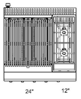 Viking Commercial V12B2-24T LP 36-in Range w/ 2-Burners & Thermostatic Griddle, 9-in Flue Riser, LP, Each