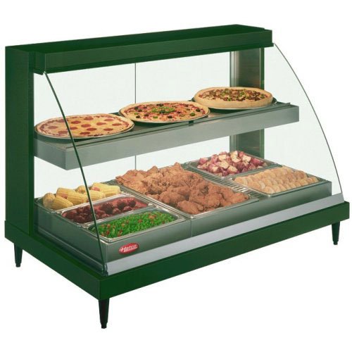 Hatco GRCD-3PD 46" Glo-Ray® Heated Display Case . When attractively displayed, prepared food can be an incredibly successful impulse buy for any food-serving operation. A quick walk past a display case may entice customers making a quick stop after a long day of work to let the establishment do the cooking for them, picking up a meal to go. Hatco offers a novel way to capitalize upon this impulse in its 46" Glo-Ray Heated Display Case (GRCD-3PD). From French fries to fried chicken, this display can hold any number of cooked foods for extended periods of time, thanks to its thermostatically-controlled heated base and infrared warming combination. This case has a wealth of features, from its roller-less sliding doors to its separate temperature controls for each heat zone within the display. Features: Cool base construction, Roller-less sliding doors, Hinged front glass panel, Tempered glass side panels, Shatter-resistant incandescent lights, Thermostatically-controlled heated base, Aluminum and stainless steel construction, Separate temperature control for each heat zone. Benefits: High-visibility merchandising, Hinged front panel allows for easy cleaning, Thermostatically-controlled base extends holding times, Cool base construction keeps outside cool to the touch, Glo-Ray® blanket heating elements warranted against burnout for one year, Glo-Ray® metal-sheathed heating elements warranted against burnout and breakage for two years. Additional considerationsThis case may be purchased in a variety of designer colors and features many additional options. These options will extend the order processing time. Contact our Product Experts at 1-877-877-4379 for a complete list of options and accessories.